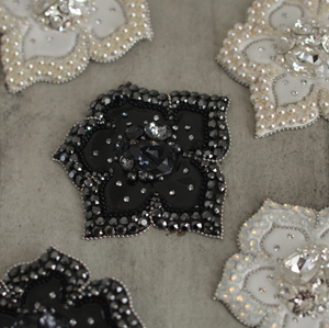 エレガントなフラワーモチーフのブローチ(ブラック)です。